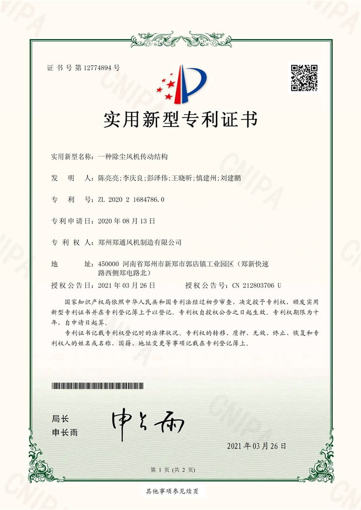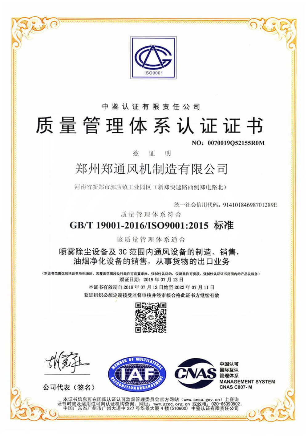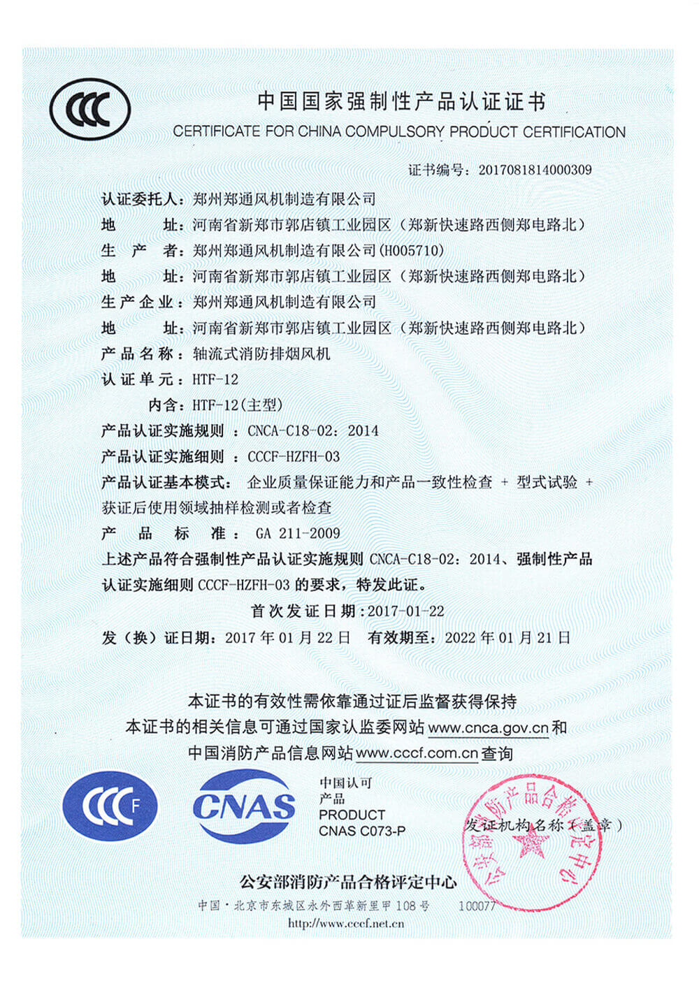 鄭通風(fēng)機主要產(chǎn)品包括:高壓風(fēng)機、不銹鋼風(fēng)機、消防排煙風(fēng)機、防腐防爆風(fēng)機、廚房排油煙風(fēng)機、玻璃鋼風(fēng)機、鍋爐引風(fēng)機、軸流風(fēng)機、柜式離心風(fēng)機、鍋爐引風(fēng)機,產(chǎn)品通過ISO9001、ISO14001、ISO45001國際標準化組織制定的質(zhì)量管理體系認證,部分產(chǎn)品通過了3C認證和國家防爆電器產(chǎn)品質(zhì)量監(jiān)督檢驗中心認證。
